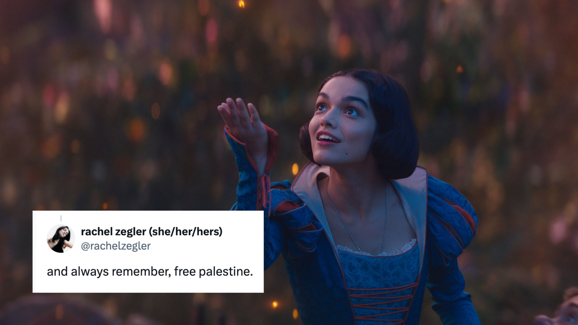 Published date: 26 March 2025 21:35 GMT“After an article reported that Rachel Zegler “trashed” the production of Disney’s Snow White due to her stance on Palestine, thousands online are applauding her vocal stance this week despite the pressures of working with Disney and former Israeli army soldier Gal Gadot.”