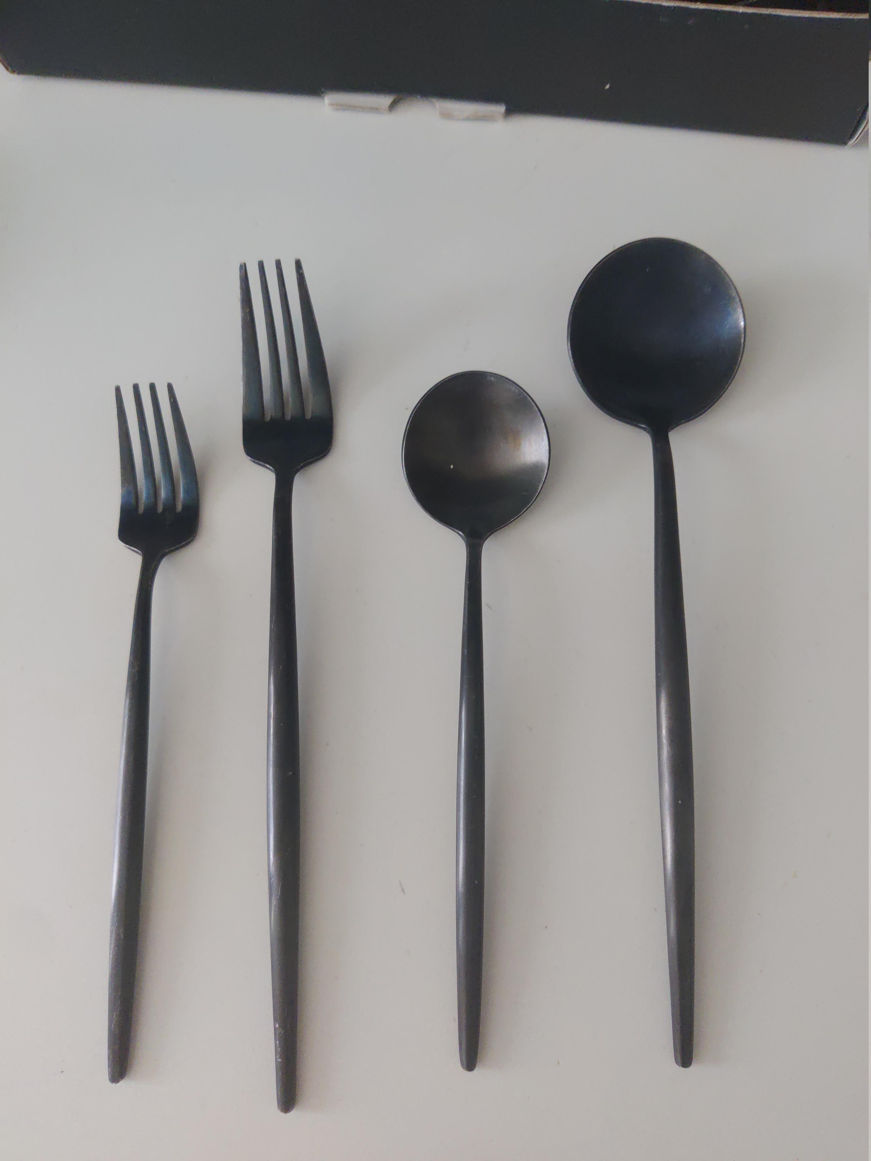 Look on the back of the stems. That’s usually where you’ll find manufacturer’s stamps. At the same time, they kind of look like tarnished silver. Try polishing them!