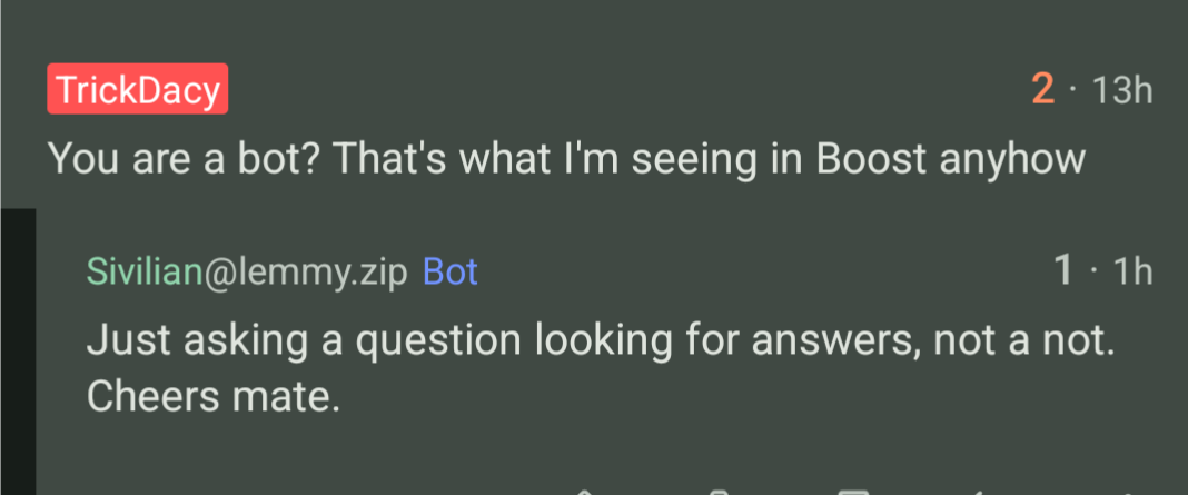 You are a bot? That’s what I’m seeing in Boost anyhow