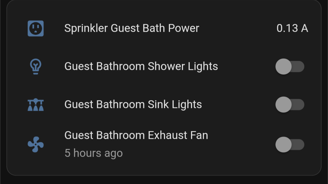 Living Room TV Nodeand the dashboard instead showing nonsense likeLiving Room Living Room TV Living Room Node. Though, not sure if the actual entity ids will follow, that is the bigger issue. 🤔I tacked a CT onto my sprinkler esp so the Mrs can be certain she turned everything off, so I’ve been living with this