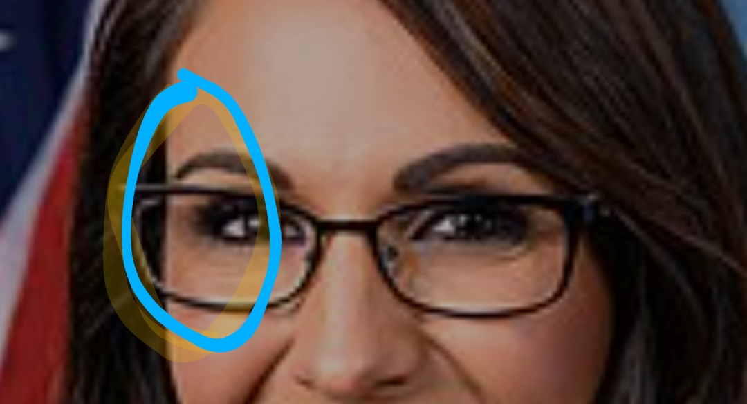 I wouldn’t be the slightest bit surprised if Boebert was actually wearing non-prescription glasses, but she could have legitimate reasons to wear glasses which still would look like that. You’d need to also check refraction in the other direction to know for sure.