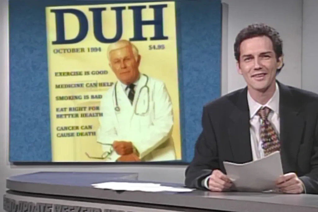 I just did it using a one word fictional magazine title. Norm used this gag more times than one, and usually accompanied the graphic with, “Read all about it in this month’s riviting issue of Duh.”