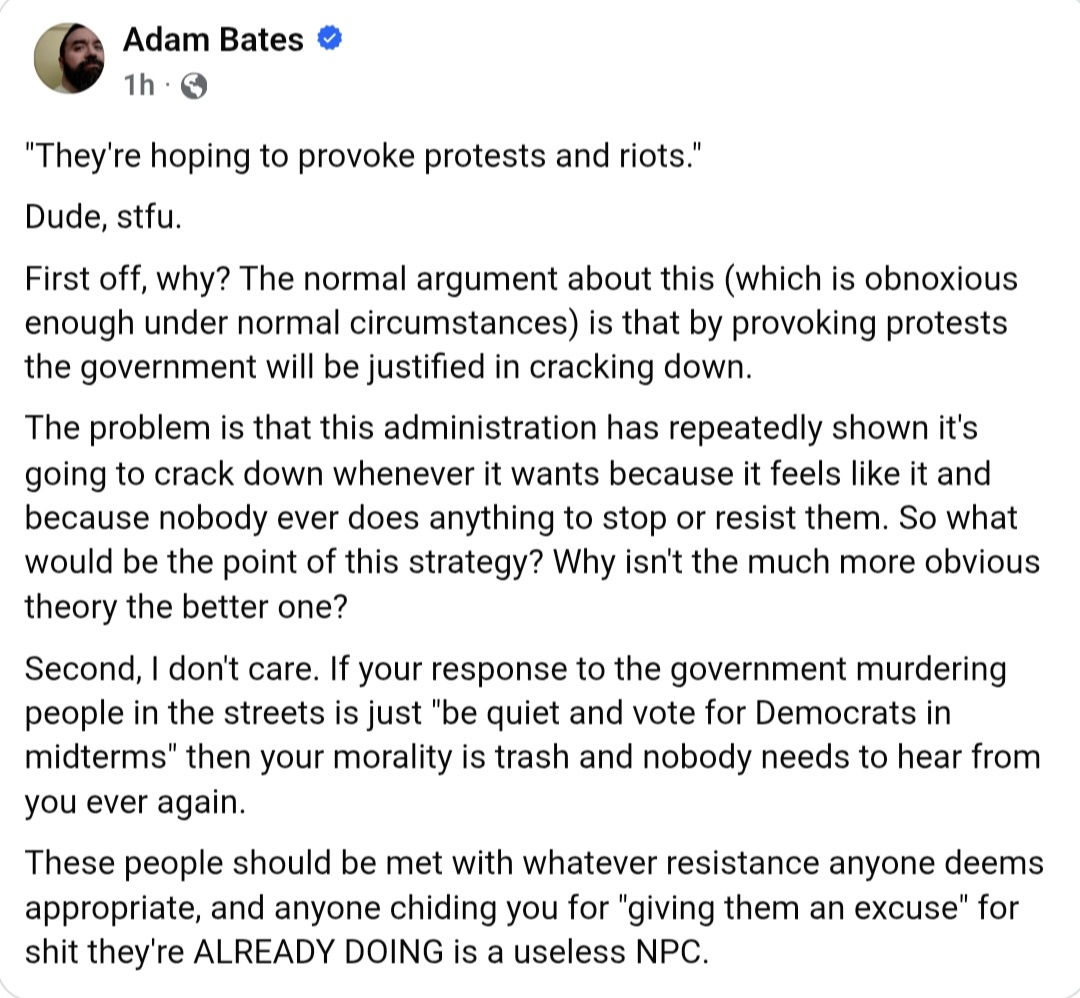 Renee Nicole Good was unarmed, and she was shot in the face by ICE. I bet a lot of people will figure that if they’re going to murder us anyway…