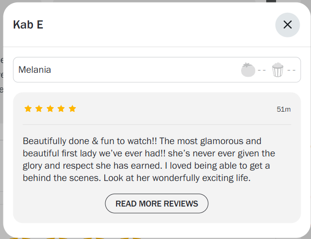 Have you noticed that Melania has no displayed star rating or reviews. Has any movie had those things hidden before?