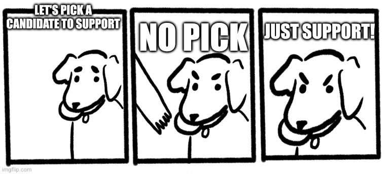 You fail basic statistics and common sense, you are free to do what ever you want, but the US election cycle is a solved problem. Drawing a line in the sand inadvertantly supports everything you are against because you are not supporting the candiates who wont do MOST of those things. You let perfection be the enemy of progress and everyone is worse off for it.