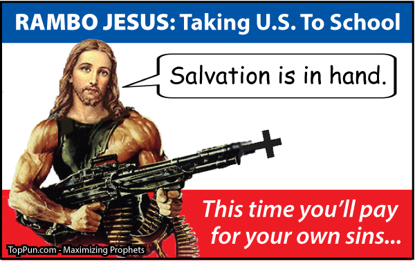 If they get their wish for the return of a Rambo Jesus, they’re gonna be pretty shocked when he starts cleaning house in the mega churches, as the Bible claims he did in the temple.