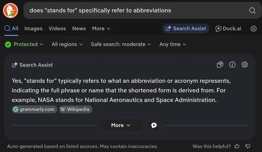 I haven’t had the time to switch to kagi yet but I have DDG and was just too lazy to turn off their AI feature. Didnt really bother me one way it the other. If the AI search doesnt answer my question I just move onto normal links. Again, for simple inquiries it just spits out the answers for me without having to click anything.