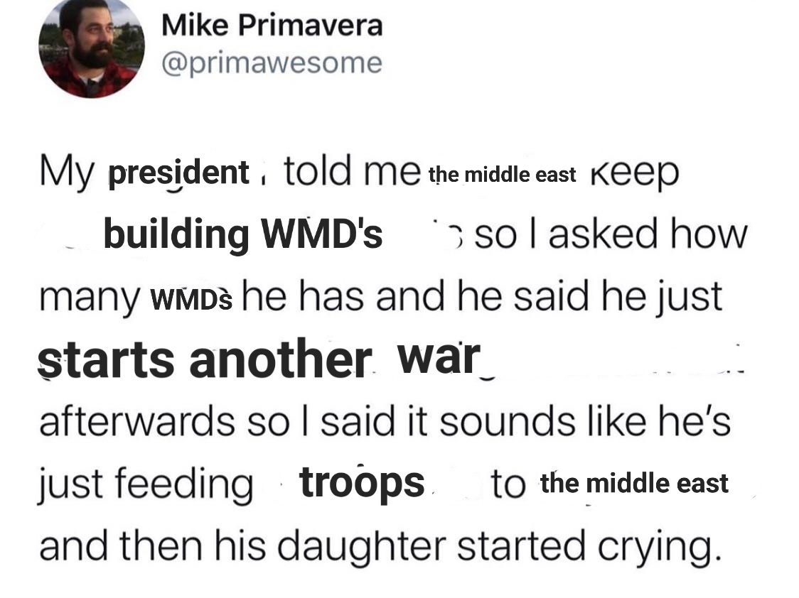 90% chance Trump thinks he’s at war with Iraq. Most of those troops couldn’t even find Iran on a map last month.